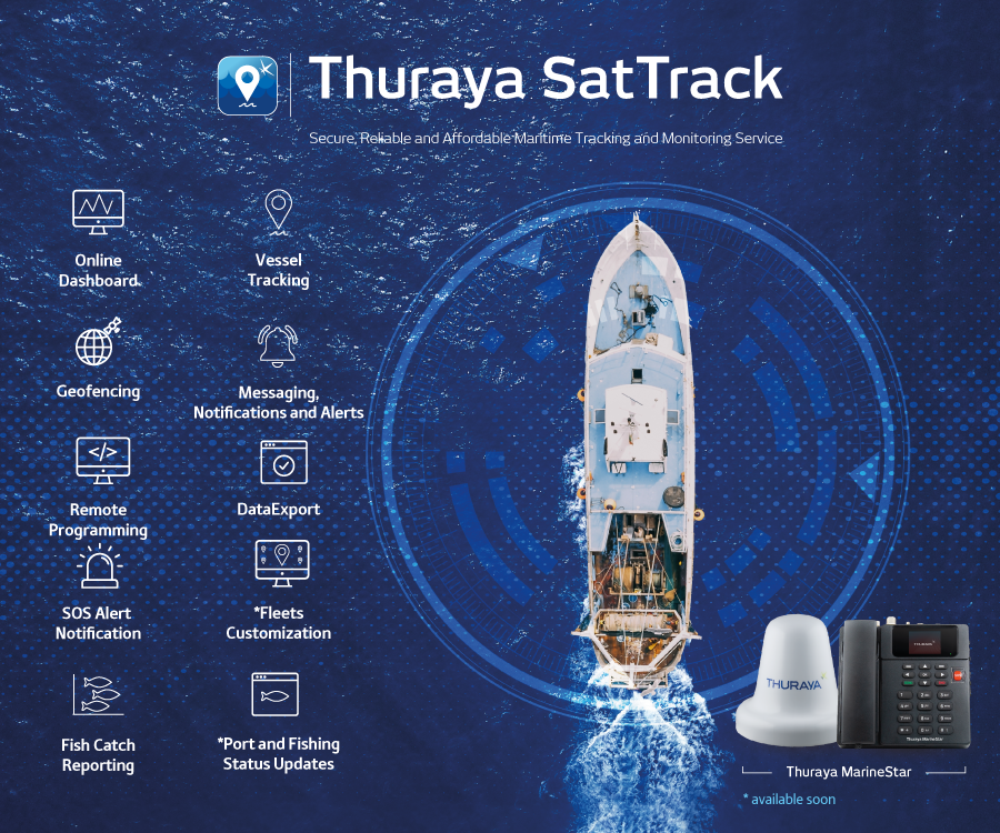 Thuraya SatTrack for Marine is a web-based Messaging, Tracking and Monitoring service, developed for fishing vessels fitted with the Thuraya MarineStar voice, tracking and monitoring solution. It is a low-cost turnkey subscription-based application available to users as part of Thuraya’s SeaLite portfolio of narrowband services. SatTrack for Marine facilitates sustainable fishing practices, better crew safety and welfare as well as fleet visibility and management in real time.
